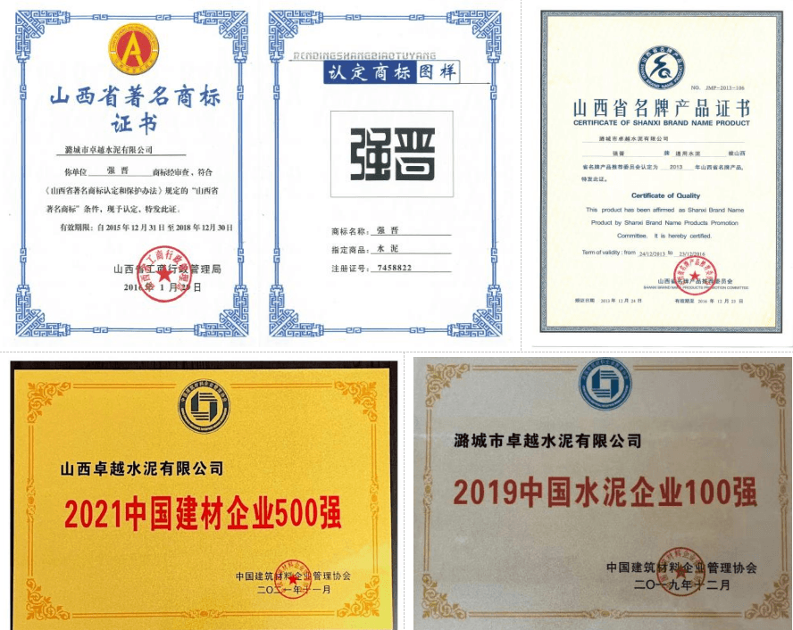 山西卓越水泥有限公司(原名為潞城市卓越水泥有限公司)(以下簡稱“卓越水泥”),成立于2006年4月18日,擁有一條日產4000噸熟料新型干法水泥生產線。 主導產品有“強晉”牌水泥熟料、通用32.5、42.5、52.5水泥、 低熱硅酸鹽水泥、道路硅酸鹽水泥等,產品是山西省“名牌產品”;“強晉牌” 商標被認定為山西省“著名商標”。