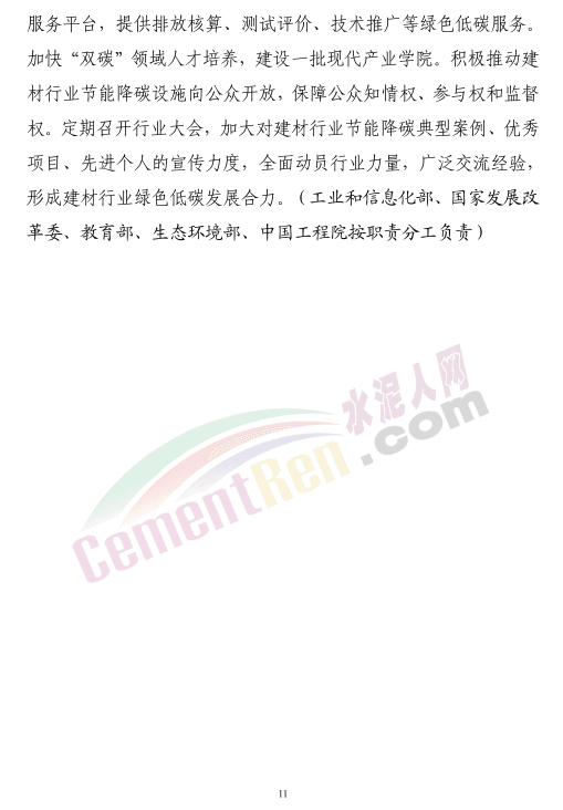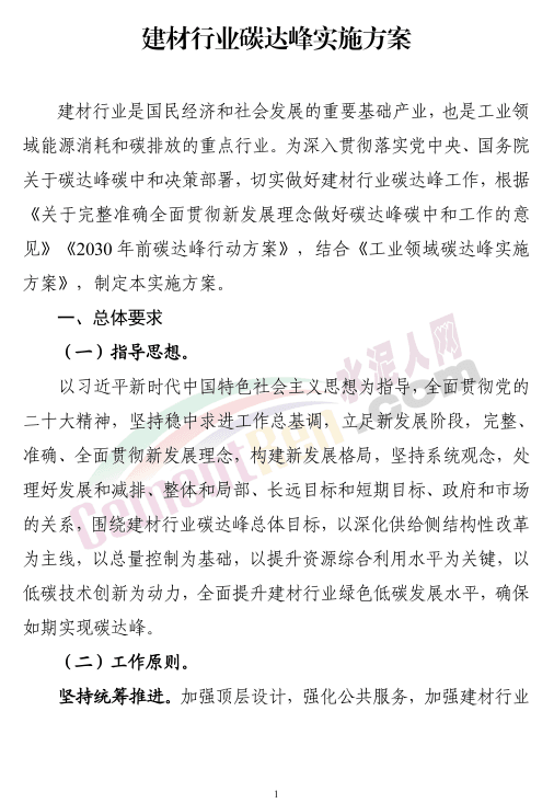 工業(yè)和信息化部、國家發(fā)展和改革委員會、生態(tài)環(huán)境部、住房和城鄉(xiāng)建設(shè)部等四部門聯(lián)合印發(fā)《建材行業(yè)碳達(dá)峰實施方案》,方案提出“十四五”期間,建材產(chǎn)業(yè)結(jié)構(gòu)調(diào)整取得明顯進(jìn)展,行業(yè)節(jié)能低碳技術(shù)持續(xù)推廣,水泥、玻璃、陶瓷等重點產(chǎn)品單位能耗、碳排放強(qiáng)度不斷下降,水泥熟料單位產(chǎn)品綜合能耗水平降低3%以上。“十五五”期間,建材行業(yè)綠色低碳關(guān)鍵技術(shù)產(chǎn)業(yè)化實現(xiàn)重大突破,原燃料替代水平大幅提高,基本建立綠色低碳循環(huán)發(fā)展的產(chǎn)業(yè)體系。確保2030年前建材行業(yè)實現(xiàn)碳達(dá)峰。