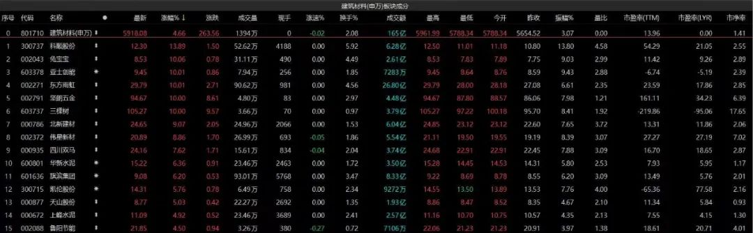 當日水泥建材等板塊相關等成分股出現不同程度上漲,逆市交出亮眼成績單。