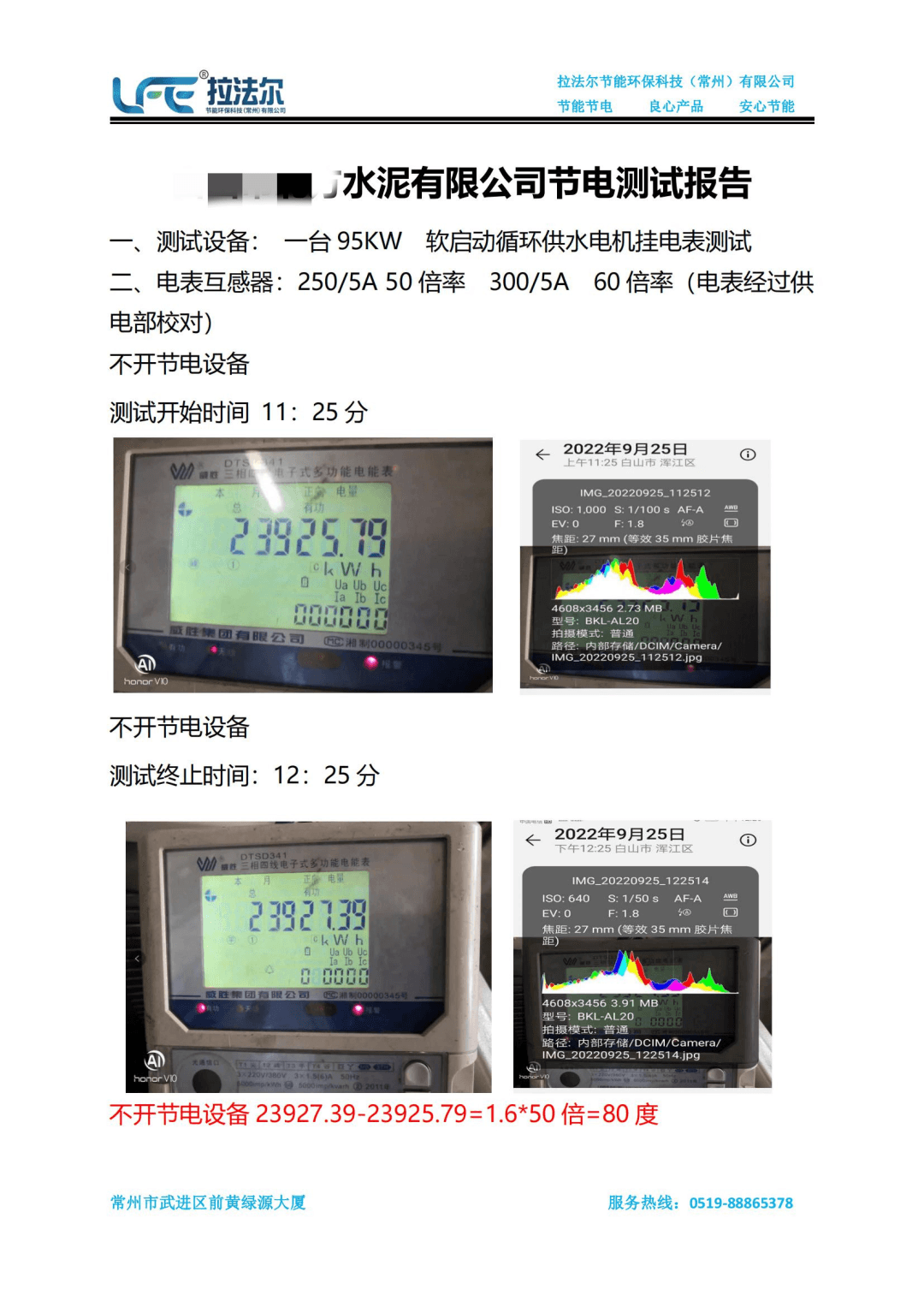 中建材集團旗下某水泥企業節電測試報告