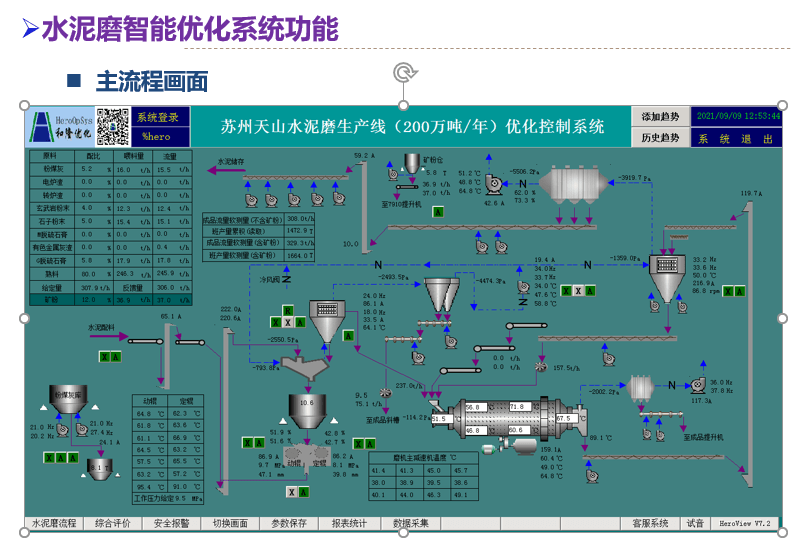 3.創造性地在水泥生產過程中采用了“自尋優”算法,結合機理模型、數據模型和專家經驗三者進行變步長、變周期尋優,使系統始終運行在最佳工況,控制主界面如下圖: