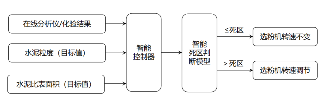 水泥成品粒度是水泥質量的核心指標,主要依托在線粒度儀實時測量(或化驗室數據)的粒度數據,實現對選粉機轉速設的實時控制。粒度控制主要以先進預測控制方法為基礎,實現對選粉機進行自動控制,控制框圖如下: