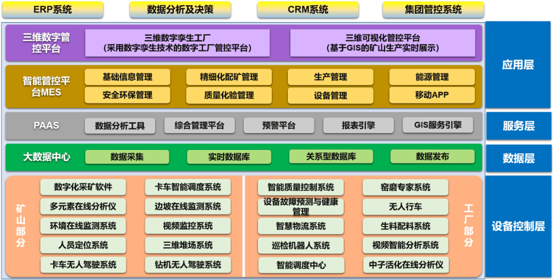 東方測(cè)控水泥智能工廠系統(tǒng)集成解決方案是一套全流程整體解決方案。該方案以節(jié)能降耗、精益生產(chǎn)為目標(biāo),建設(shè)石灰石數(shù)字礦山系統(tǒng)、卡車智能調(diào)度系統(tǒng)、水泥生產(chǎn)兩磨一窯智能控制和過(guò)程質(zhì)量控制以及智慧物流、設(shè)備故障與健康管理系統(tǒng)、生料配料分析儀、智能質(zhì)量控制系統(tǒng)等系列智能化系統(tǒng),實(shí)現(xiàn)生產(chǎn)智能控制。利用數(shù)字化協(xié)同、大數(shù)據(jù)分析技術(shù)實(shí)現(xiàn)智能管理,智慧決策。目前水泥智能工廠系統(tǒng)集成解決方案已在海螺水泥、青松建化等大型水泥集團(tuán)成功應(yīng)用。