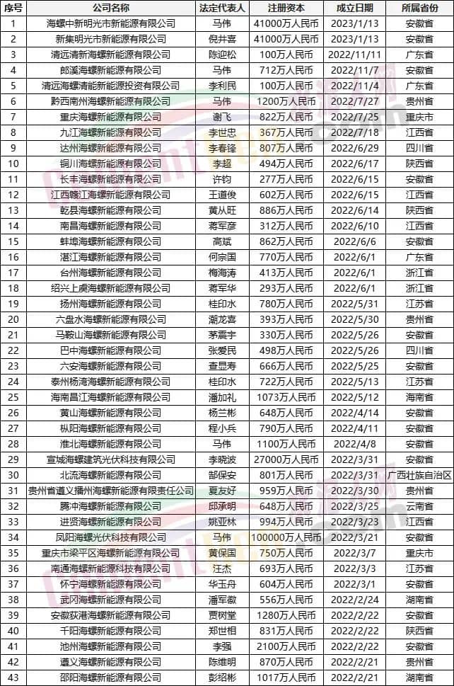 據(jù)不完全統(tǒng)計(jì),海螺水泥近一年來已注冊(cè)成立40多家新能源公司。