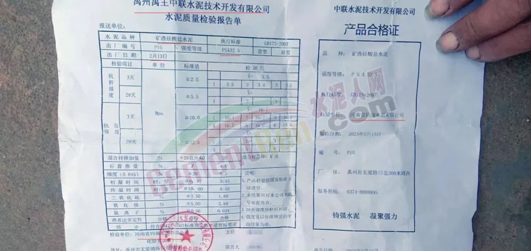 日前,河南省南陽市某建材門市向水泥人網(wǎng)反映:“許昌禹州禹王中聯(lián)(PSA32.5)袋重不足,廠方所提供的質(zhì)量檢驗(yàn)報(bào)告單與攪拌站所測數(shù)值,相差甚遠(yuǎn)”。