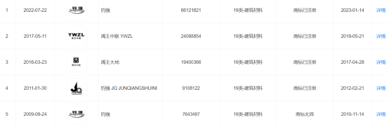 河南省鈞強(qiáng)水泥有限公司注冊(cè)商標(biāo)圖片當(dāng)前狀態(tài)為已注冊(cè),有效期內(nèi)。且同時(shí)擁有“鈞強(qiáng)、禹王大地”等多個(gè)注冊(cè)商標(biāo)。