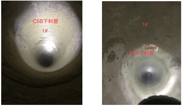第二次停窯期間,對(duì) C5 下料管進(jìn)行檢查
