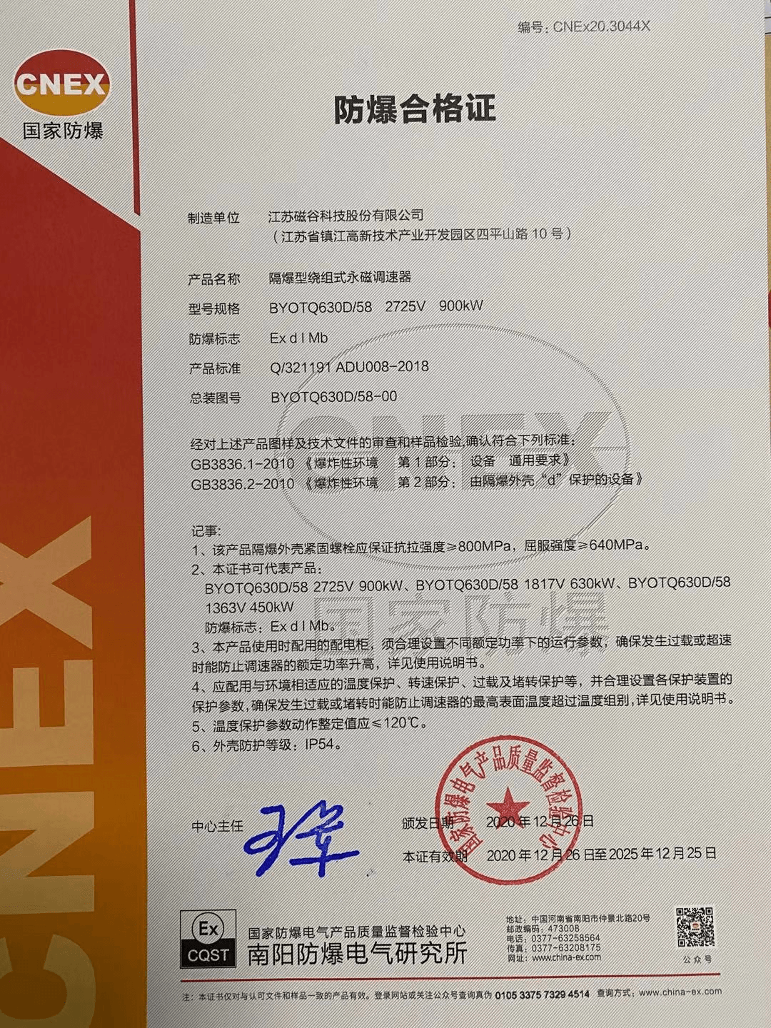 8、獲得國家防爆電氣產(chǎn)品質(zhì)量監(jiān)督檢驗(yàn)中心頒發(fā)的防爆合格證。
