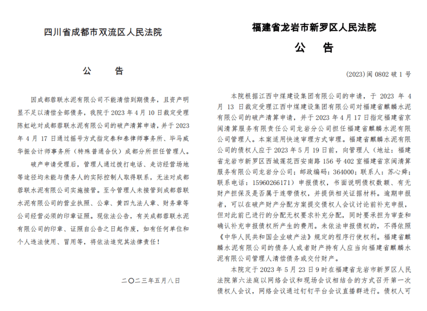 成立不足五年就注銷的水泥企業