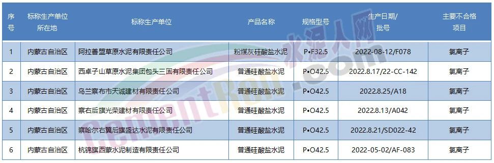 據水泥人網了解,今年4月份公布的國抽結果顯示,內蒙古自治區6批次不合格水泥中5批次為氯離子不合格。