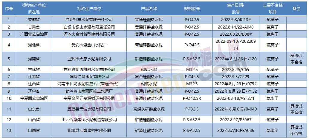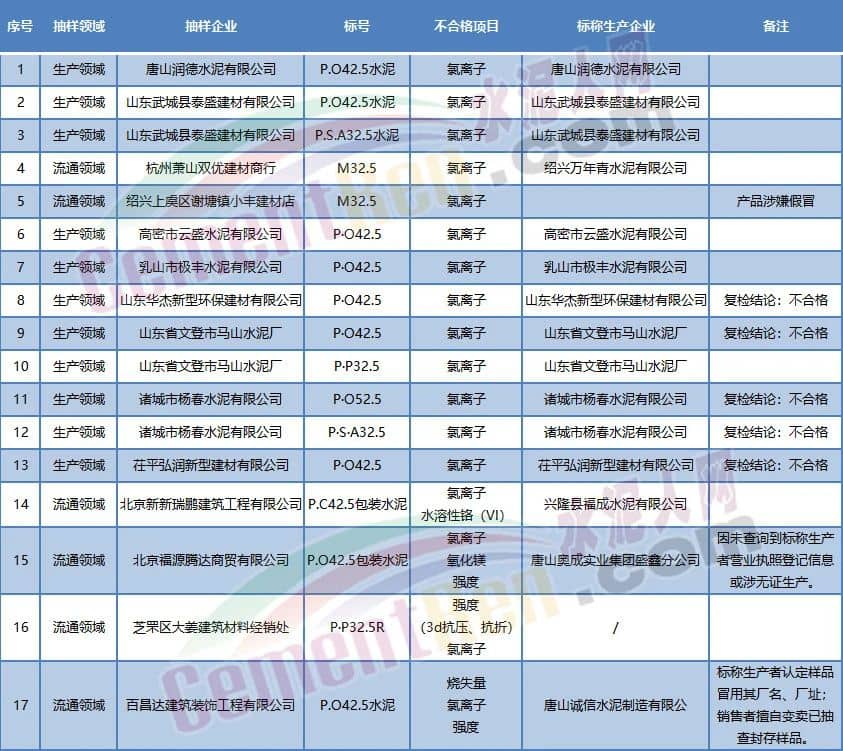 近期各地市場監管部門公布35批次不合格水泥中有17批次水泥氯離子不合格。