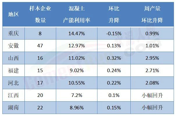 其中,安徽、山西、河北近期天氣利好施工,攪拌站恢復正常供應,混凝土發運量出現小幅回升;重慶新開工項目較少,需求不佳,混凝土發運量有所降低;福建市場新增較少,多數已在手訂單項目有所開工,因此帶來些許新增需求,短期來看,項目工程進度受到資金困擾較大。