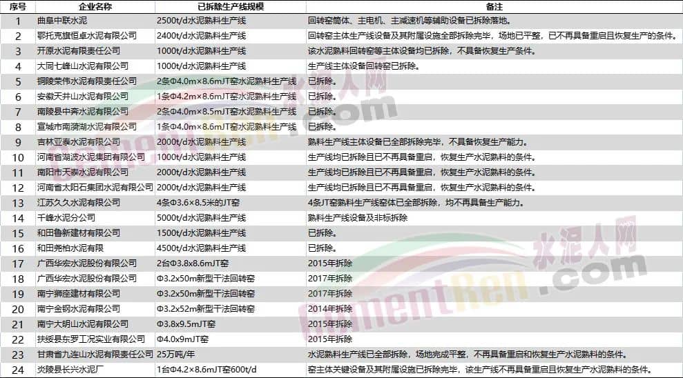 近日多個地區工信部門發布了水泥熟料生產線拆除退出的消息。據水泥人網不完全統計,今年以來已有30多條生產線關停退出,并完成關鍵設備拆除,退出產能合計超1000萬噸/年。