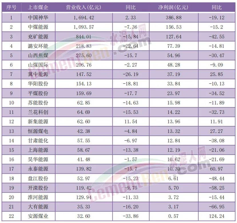 2023年上半年上市煤企經營業績