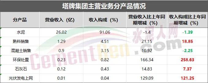 報告期內,公司部分水泥窯協同處置固廢項目逐步轉入正常運營,環保處置量逐漸增加,實現環保處置營業收入2333.10萬元,同比實現大幅增長298.82%。未來,塔牌集團將加快在建水泥窯協同處置固廢項目建設進度,進一步擴大處置規模,增加處置品類,盡快形成新的業績增長點。