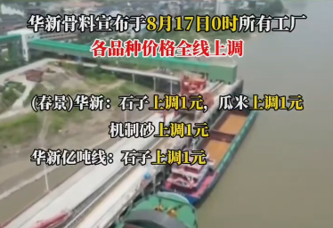 另據市場反饋,華新骨料曾于8月17日0時上調所有工廠產品價格。