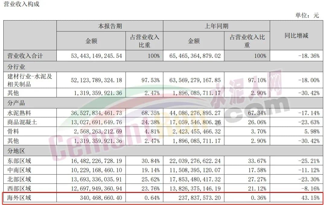 2023年上半年,天山股份海外區(qū)域營業(yè)收入3.4億,同比去年增加43.15%。天山股份相關人士稱,目前,公司下屬區(qū)域公司中材水泥已完成國內(nèi)水泥資產(chǎn)的剝離,專注于國際化業(yè)務拓展。當前,我國水泥巨頭在“一帶一路”沿線國家和地區(qū)的布局在加速推進。