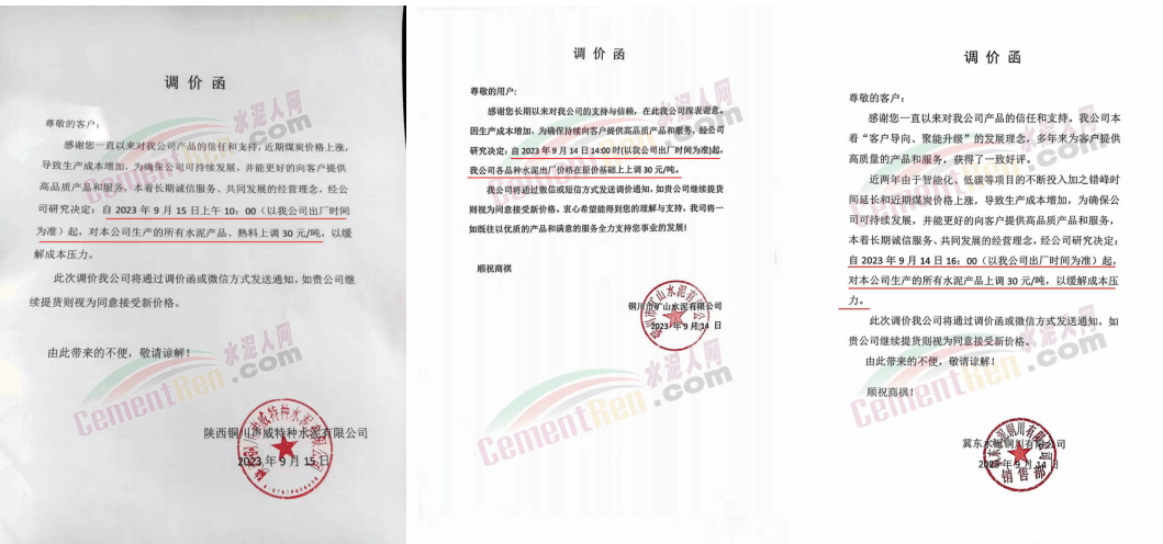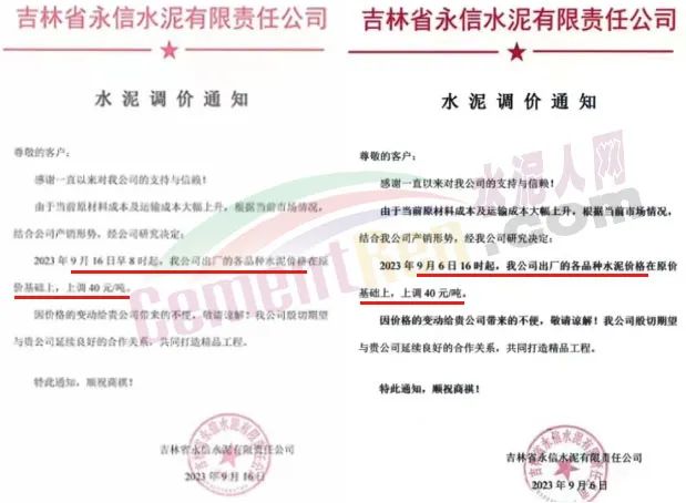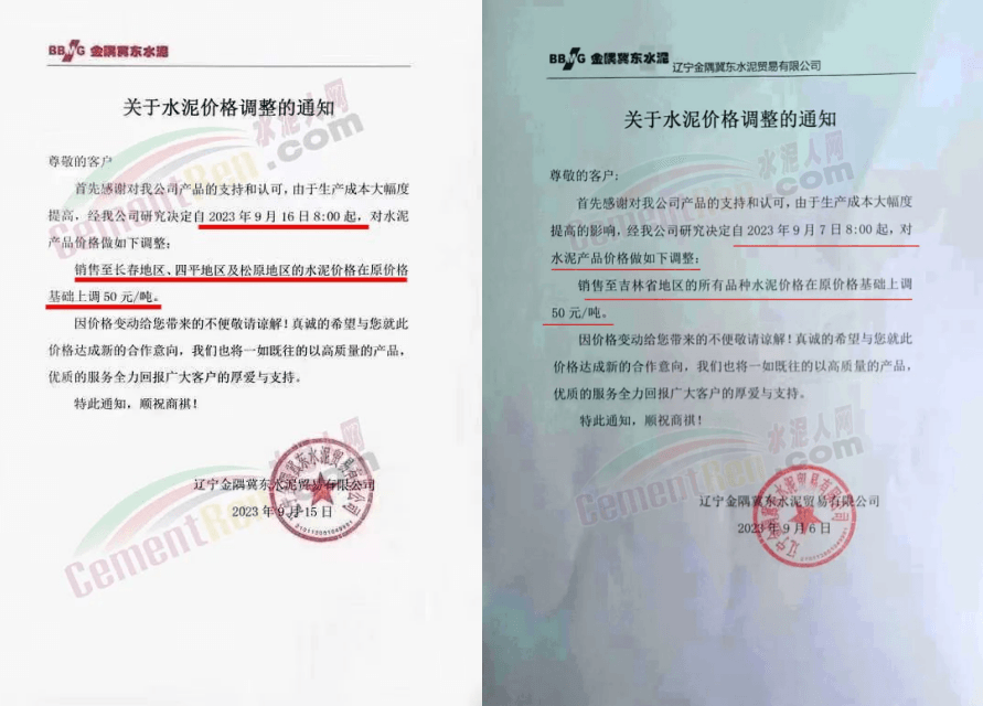 華新水泥(宜昌)公司、葛洲壩松滋水泥通知,因公司生產(chǎn)成本持續(xù)上漲,市場行情發(fā)生變化,經(jīng)公司研究決定于2023年9月20日17:00起,所有品種水泥價格上調(diào)20元/噸。