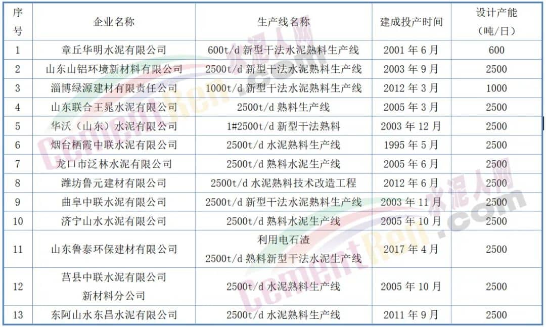 據(jù)了解,截至2022年12月31日山東省內(nèi)共有85條熟料生產(chǎn)線,其中2500t/d及以下生產(chǎn)線13條,包含山東魯泰環(huán)保建材有限公司一條利用電石渣2500t/d熟料新型干法水泥生產(chǎn)線。