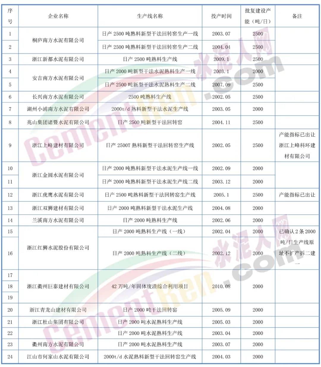 浙江紅獅水泥股份有限公司已確認(rèn)兩條2000t/d生產(chǎn)線原址不擴(kuò)產(chǎn)拆二建一;浙江上峰建材有限公司日產(chǎn)2500噸熟料新型干法回轉(zhuǎn)窯生產(chǎn)線產(chǎn)能指標(biāo)已出讓浙江上峰科環(huán)建材有限公司;浙江虎鷹水泥有限公司,日產(chǎn)2500噸熟料新型干法回轉(zhuǎn)窯生產(chǎn)線產(chǎn)能指標(biāo)已出讓。