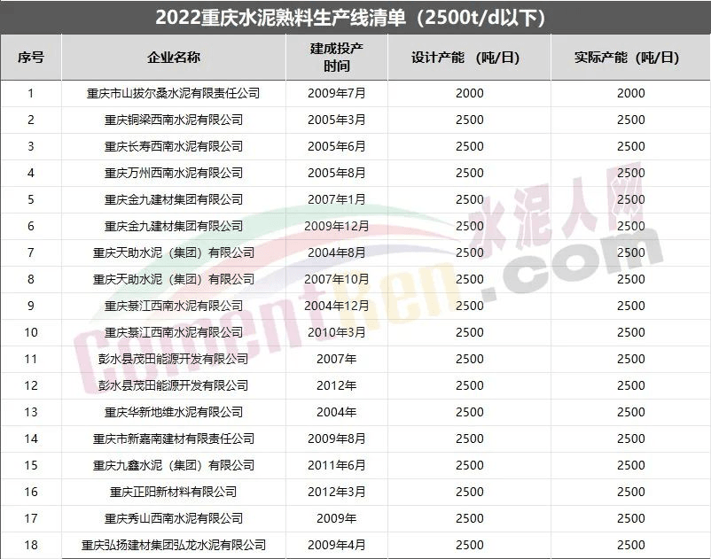 重慶市2025年底前退出單條生產(chǎn)線2500t/d及以下的普通水泥熟料產(chǎn)能
