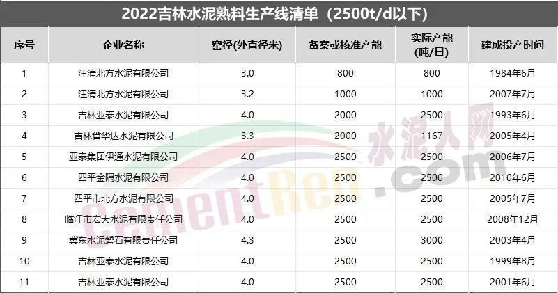吉林要求2025年底前通過(guò)省內(nèi)產(chǎn)能置換,逐步退出2500t/d以下熟料生產(chǎn)線