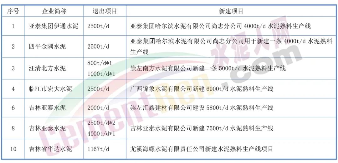 另?yè)?jù)了解,今年4月中旬,吉林省工信廳公布水泥熟料生產(chǎn)線清單顯示,9條2500t/d及以下水泥熟料生產(chǎn)線已通過(guò)產(chǎn)能置換出讓,退出項(xiàng)目將隨著新建線投產(chǎn)逐步退出。