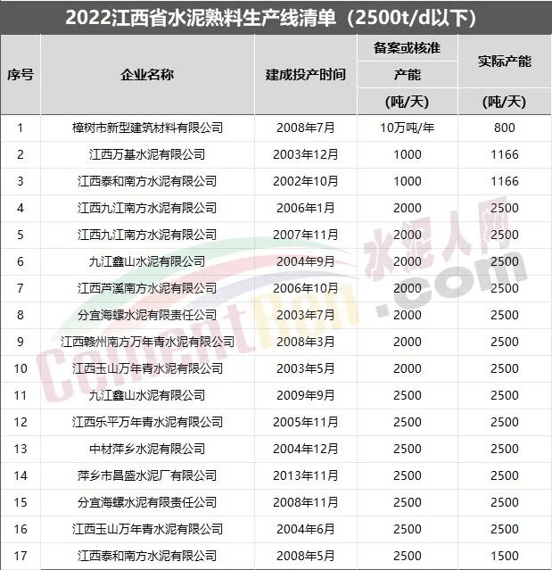 江西省2025年底前淘汰2000t/d及產(chǎn)能利用率較低的地區(qū)的2500t/d生產(chǎn)線