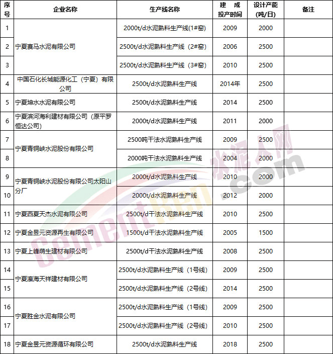 寧夏回族自治區(qū)2025年底前淘汰2500t/d水泥熟料生產(chǎn)線