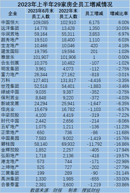 房企的命運似乎隨著這兩家龍頭企業一起被釘上了“恥辱柱”。據水泥人網了解,今年以來地產企業減員降薪持續,22家房企近半年減員2.8萬人。疊加2022年TOP50房企減員16萬,近20萬的減員,令 “就業蓄水池”突生變故。