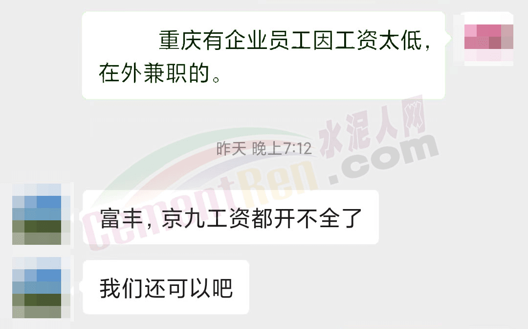 重慶某水泥企業工會負責人表示:富豐、京九工資都開不全了。