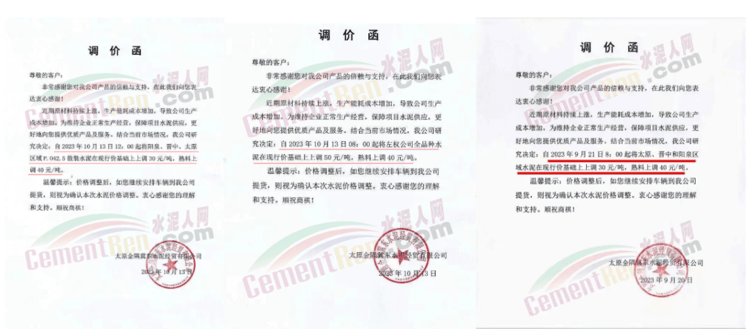 富民金銳水泥建材有限責任公司通知,根據市場變化情況等原因,經公司研究決定,于2023年10月16日8時起,對所有區域,所有品種水泥,在原價格基礎上上調30元/噸。