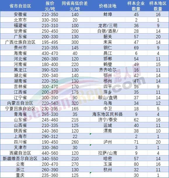 水泥人網信息中心最新調研數據顯示:全國31個省市1070余家企業中,廣西來賓、河南鶴壁、四川瀘州等區域水泥報價已跌破200元/噸。寧夏銀川批發價下探至150-170元/噸,成為價格“深坑”。多區域價格撕裂加劇:廣西壯族自治區內價差高達300元/噸,內蒙古自治區內價差320元/噸。水泥核心消費市場之一的華東地區竟成了低價“重災區”:安徽蚌埠210元/噸、福建龍巖210元/噸、浙江杭州260元/噸。