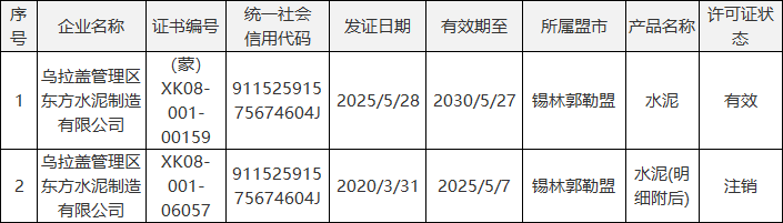 在梳理抽檢信息時發現,部分不合格企業還存在資質與商標使用不規范問題,涉嫌違反相關管理規定。烏拉蓋管理區東方水泥制造有限公司成為典型案例。該企業生產的“奧援”牌礦渣硅酸鹽水泥(P.S.A42.5),不僅氯離子檢測不合格,還存在雙重違規:一是生產許可證編號“XK08-001-006057”已處于注銷狀態,企業雖已申請新證“(蒙)XK08-001-00159”,但產品包裝未及時更新標注;二是所使用的“奧援”商標,實際歸屬三河市東方水泥有限公司,且當前商標狀態為“無效”,涉嫌違規使用他人失效商標。